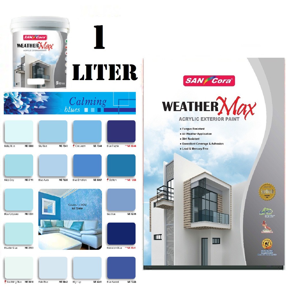 1 Liter Sancora Weather Max Exterior Outdoor Paint Cat Luar Rumah Blue Biru Shopee Malaysia