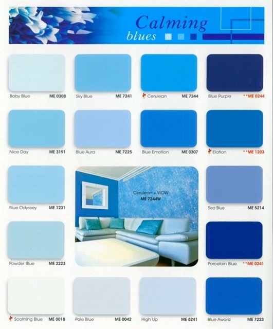 Colour Chart Samurai Paint Malaysia. Cat rumah warna biru muda dan hijau. Kombinasi warna biru untuk cat rumah.